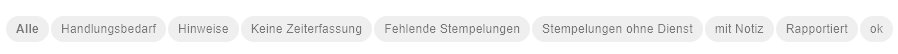 Der Meldungen Katalog der Zeiterfassung erklärt bereits die verschiedenen Filter.