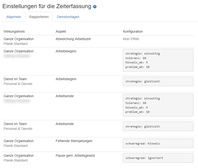 Diese wird individuell vorab mit vorab mit der Kundin bestimmt und entsprechend eingestellt. Es wird bestimmt, wie sich die Arbeitszeit verhalten resp. wie diese interpretiert werden soll. Die Einstellung erfolgt initial über die Projektleitung Planik und anschliessen über den Planik-Support.