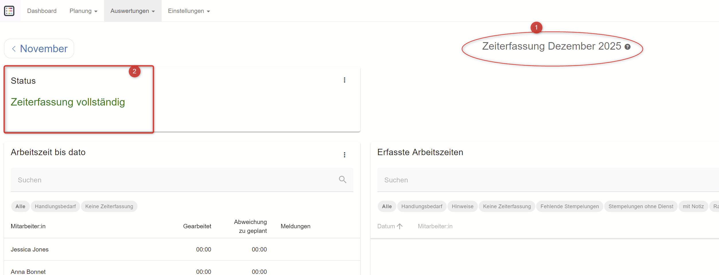 3. Übersicht der Zeiterfassung pro Mitarbeitende