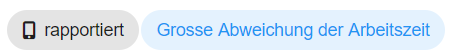 Ensprechend werden diese auch in der Statuskachel wiedergegeben - siehe: Einstieg in die Zeiterfassung/Statuskachel
