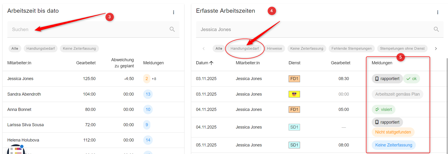 - 3. Übersicht der Zeiterfassung pro Mitarbeitende